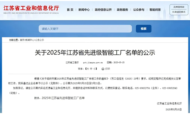 近日,,,,江苏省工业和信息化厅正式公示《2025年度江苏省先进级智能工厂名单》,,,轻柔水凭借“基于5G和数字孪生的铝型材制造智能工厂”项目成功入选,,,标志着企业在智能制造领域的创新能力和技术水平再获权威认可。。。。